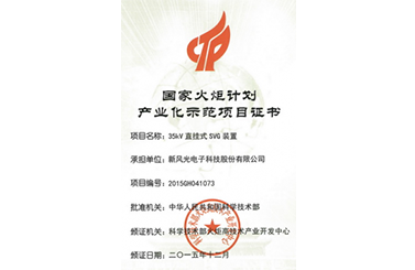 SVG國(guó)家火炬計(jì)劃-產(chǎn)業(yè)化示范項(xiàng)目證書