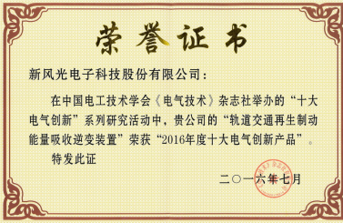 2016年度電氣創(chuàng)新產(chǎn)品證書