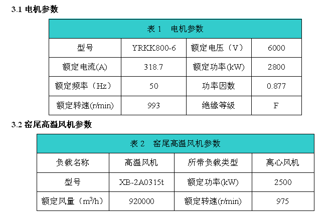 3現(xiàn)場窯尾高溫風(fēng)機(jī)及電機(jī)參數(shù)