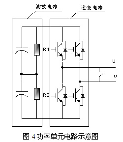 功率單元電路如圖4所示。為保證功率單元的可靠性,設(shè)計(jì)時(shí)選用同一批次的元器件,保證各元器件性能的一致性。每個(gè)功率單元均具有完善的保護(hù)措施,并且各工作狀態(tài)均送回主控單元,主控與各單元信號連接均采用光纖。